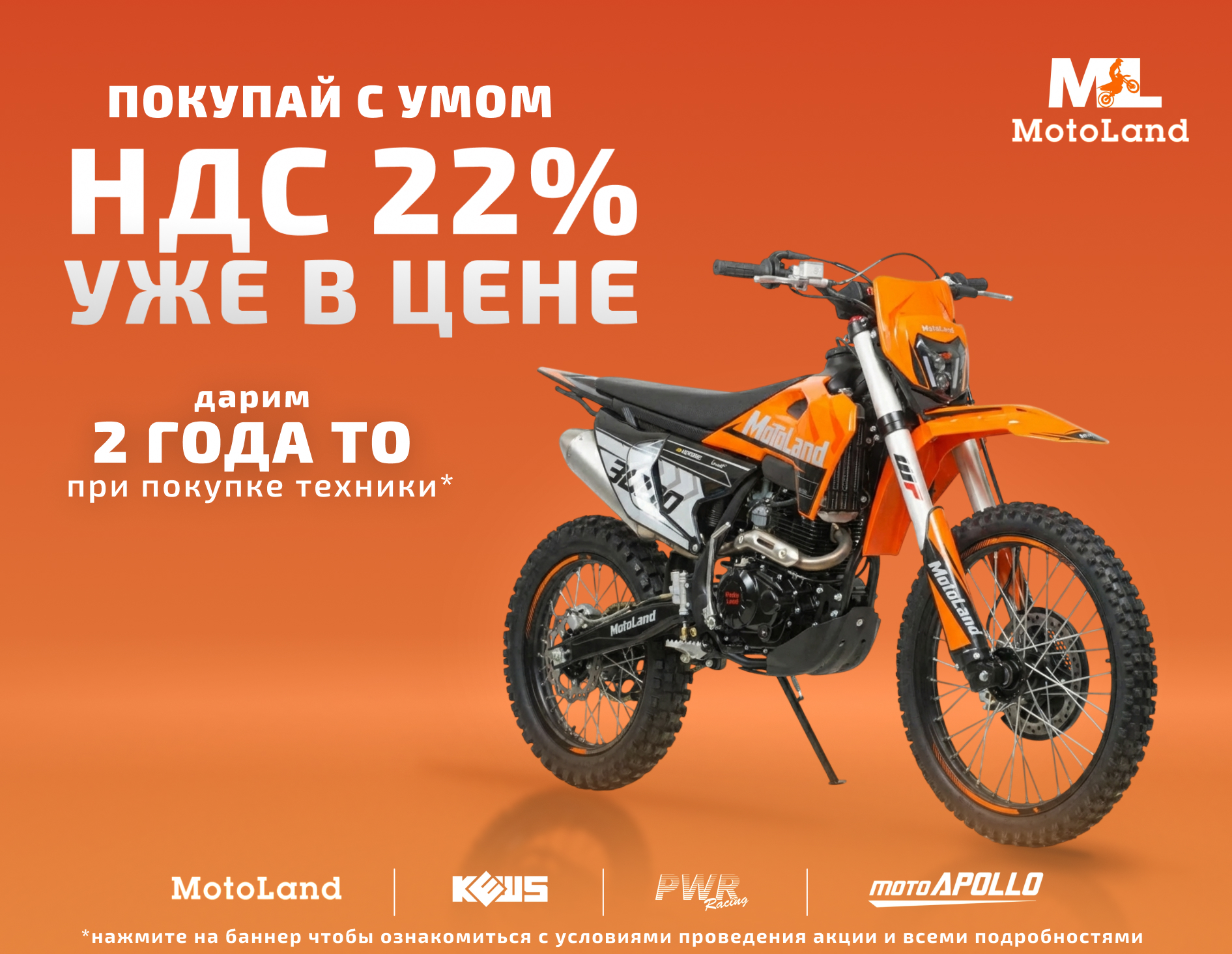 Мы специализируемся на продаже мотоциклов собственного производства, а также предлагаем широкий ассортимент запчастей для мототехники. Наши ключевые бренды – Motoland, PWR, MOTO APOLLO – это сочетание инновационных технологий, надежности и стиля.