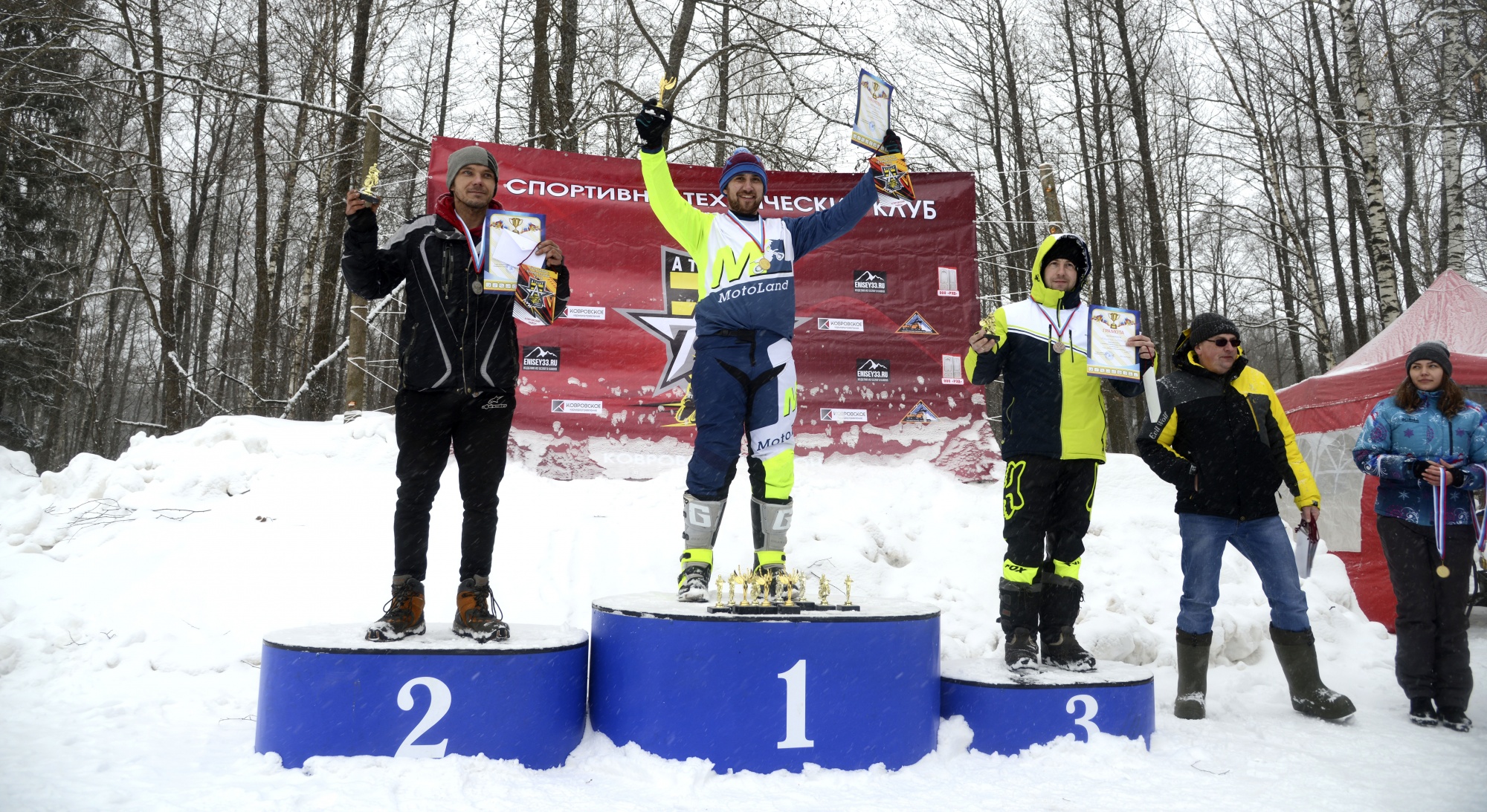 Андрей приехал к финишу первым на Motoland MX 125. Ни снег, ни ветер, ни преддверие всемирного женского дня не помешали Андрею, профессионально пройти трассу дважды. Не замёрзнуть и комфортно себя чувствовать на треке ему помогала экипировка HIZER, поддержка зрителей и горячий чай с булочкой.
