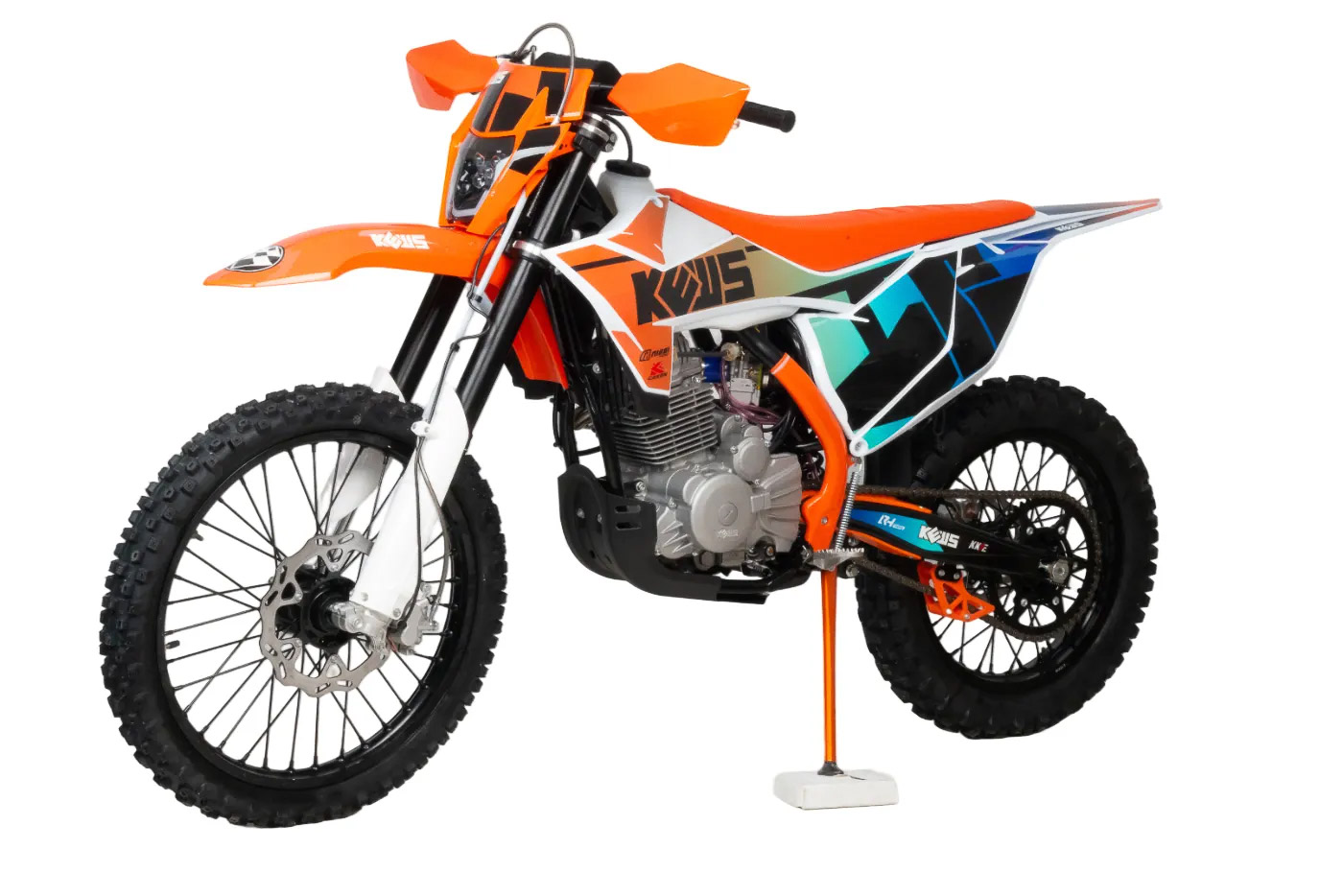 Kews K 23 PRO оснащен мощным мотором NB300F объемом 300 куб. см с воздушным охлаждением. Это обеспечивает отличную производительность и надежность, а также позволяет мотоциклу уверенно справляться с разными типами трасс и сложными условиями.