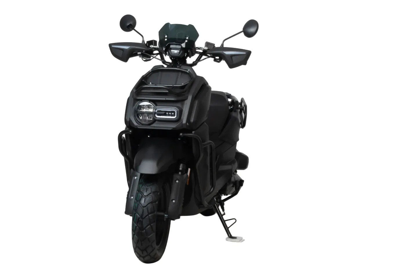 Брутальный внешний вид и черный цвет делает его не похожим на другие скутера. Дополнительные ДХО, светодиодные поворотники и стоп-сигнал.